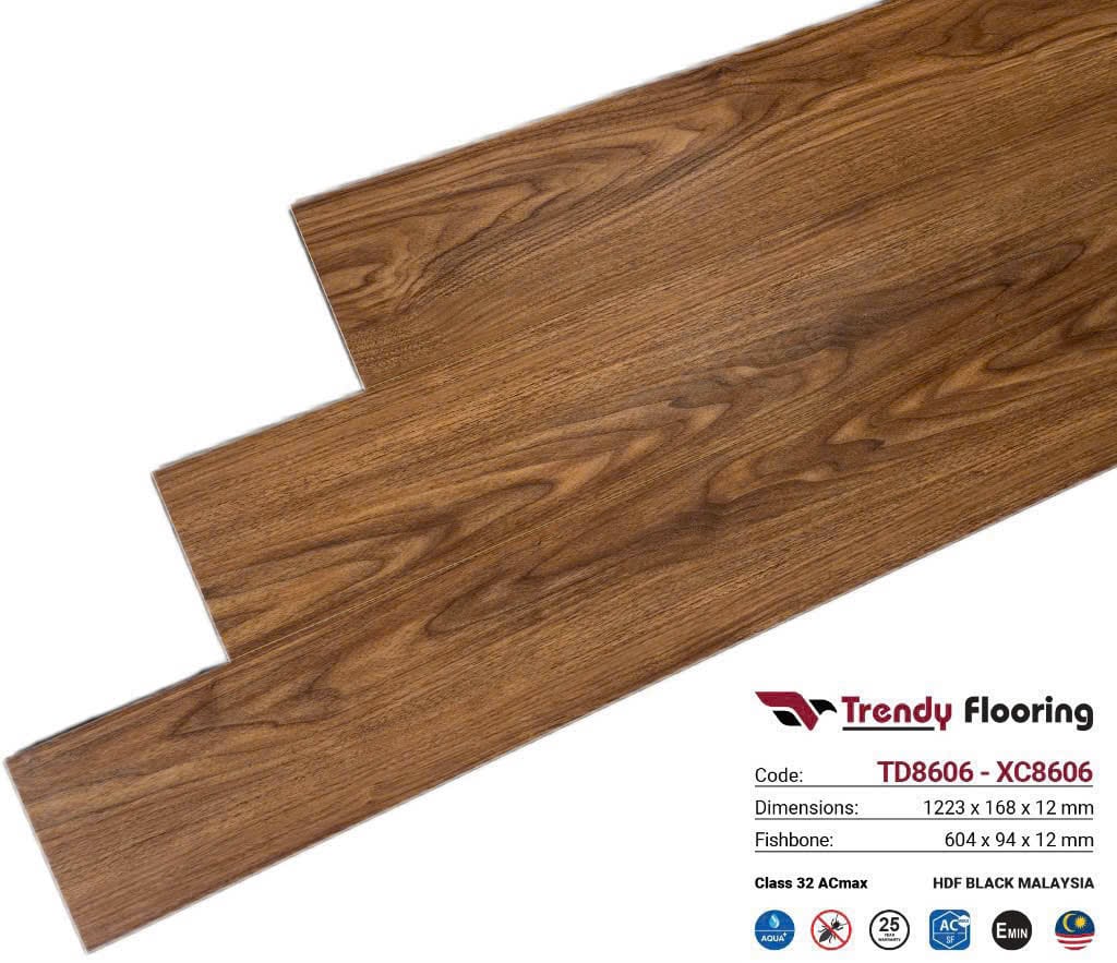 Sàn Gỗ Nhập Khẩu tự hào là đơn vị phân phối và thi công sàn gỗ công nghiệp hàng đầu, cam kết mang đến cho khách hàng sản phẩm Trendy Flooring TD8606 chính hãng với chất lượng tốt nhất.